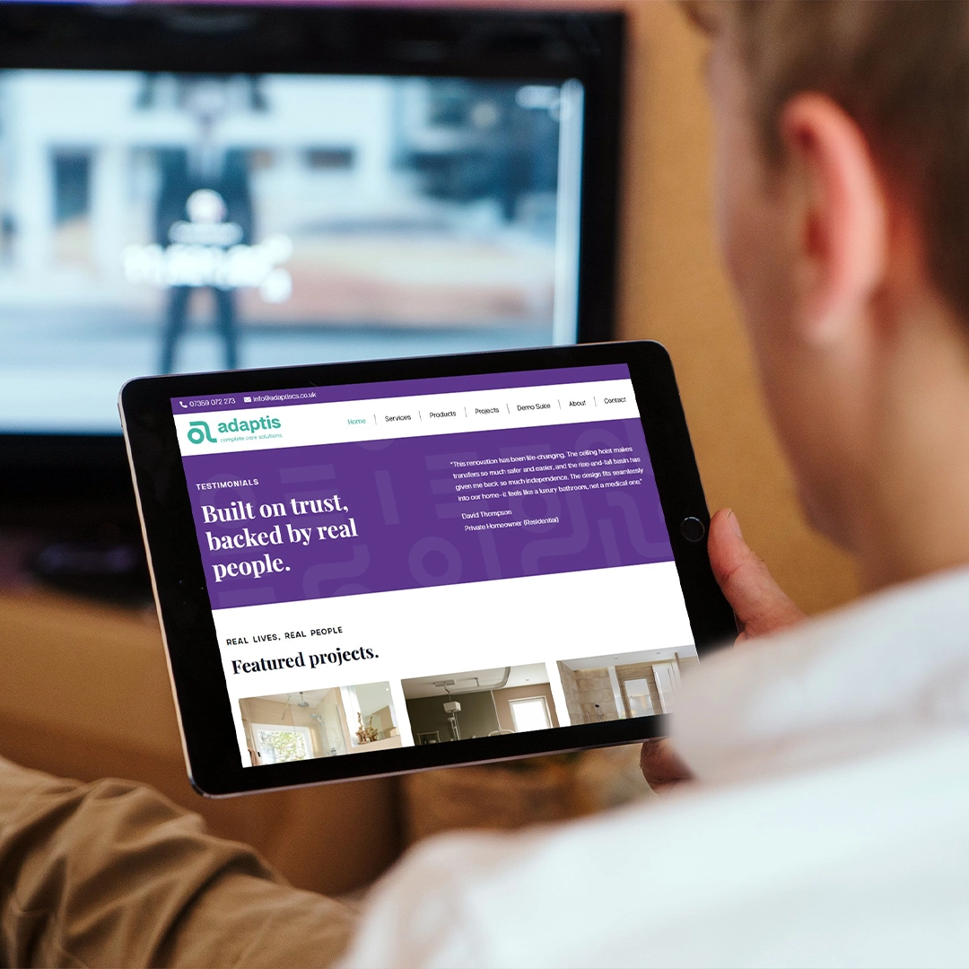 Adaptis Care Solutions are specialists in inclusive design and accessible living, trusted by homeowners, health authorities and businesses to deliver fully accessible spaces. Based in Yorkshire and working nationwide, they required a warm, professional website that clearly communicates their personal, end-to-end approach to accessibility, care solutions and home adaptations.